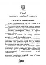 5 ноября 2019 года проходило заседание Совета при Президенте по русскому языку. В.В. Путин поддержал идею организации и подготовки празднования 225-летия со дня рождения А.С. Пушкина в 2024 году. На заседании обсуждалось состояние домов-музеев Пушкина в Кишиневе и Гурзуфе. На рассмотрение Президенту было передано коллективные письма от директоров пушкинских музеев.