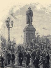 В 1880 году Достоевский принял участие в Пушкинском празднике, состоявшемся в Москве в честь открытия памятника поэту. Торжественные мероприятия, приуроченные к этому событию, стали яркой страницей в литературной и общественной жизни России. Помимо открытия памятника, созданного Опекушиным и установленного на Тверском бульваре, они включали в себя публичные заседания Общества любителей российской словесности, литературно-музыкальные вечера, торжественные обеды и выступления известных деятелей культуры, из которых лучшими были признаны речи Тургенева и Достоевского. Речь Достоевского о творчестве Пушкина «затмила все, произнесенное другими ораторами». Она настолько потрясла присутствующих, что совершенно незнакомые люди обнимали друг друга, давали слово измениться и быть лучше. По словам современника, «своею огненною речью» Достоевский «дал этому празднику душу», превратил его в «настоящее торжество». Писатель был единогласно избран почетным членом Общества любителей российской словесности и увенчан огромным лавровым венком, который он возложил к подножию памятника Пушкину.