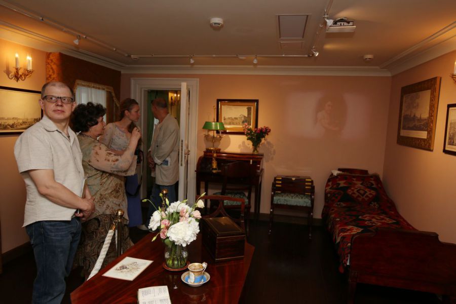 «В музее нет поясняющих надписей под экспонатами, как в обычном музее. Сотрудники поставили перед собой задачу воссоздать атмосферу пушкинского времени. В книжном шкафу Василия Львовича - фолианты в три ряда, как и при жизни поэта, в столовой накрыт стол. Воссоздана даже комната камердинера Игнатия Хитрова. И чучело дурного вкуса, в которое стрелял Василий Львович на церемонии посвящения в члены общества «Арзамас», - тоже имеется.
