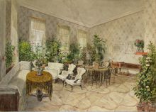 Особую популярность живые растения в интерьерах российских домов приобрели к середине XIX в. Трудно себе представить интерьер в эту романтическую эпоху без зеленых любимцев, символизировавших уют повседневной жизни. Широкому распространению растений в интерьерах способствовали и достижения ботаники, позволившие выращивать в домах даже сложные культуры. С помощью растений владельцы домов стремились создать более уютные интерьеры, а в них –  так называемые уголки, с помощью новых способов расстановки мебели или путем закрытия некоторых дверей в анфиладах, или путем использования ширм и т.д.  Растения в горшках или боскетных ящиках помогали скрыть, а точнее – замаскировать прежние черты парадных интерьеров, снять теперь казавшуюся излишней официальность, придать камерность, интимность.