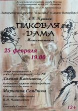 Карточная игра, дьявольское искушение, смерть, безумие, борьба Бога и дьявола за душу человека… Почти мистическое, необычайное происшествие, наполненное «истиной страстей и правдоподобием чувствований» – в основе повести А.С. Пушкина «Пиковая дама». Как много существует истолкований этого текста, смыслы которого неисчерпаемы! Многие зрители привыкли воспринимать «Пиковую даму» сквозь призму оперы П.И. Чайковского. Между тем, у Пушкина совершенно другое произведение. Какое? Об этом – моноспектакль, поставленный заслуженным деятелем искусств РФ Дженни Катышевой, в исполнении актрисы петербургского литературного театра «Классика», арт-кафе «Подвал Бродячей собаки», обладательницы первой премии международного лондонского фестиваля «Звёзды Альбиона» (2017), лауреата российских театральных фестивалей – Марианны Семёновой.