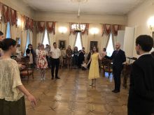 Начались праздничные мероприятия с литературной дискуссии 26 мая под названием «Я помню чудное мгновенье». В ней участвовали как совсем юные, так и более взрослые члены студии «Культура. Экология. Английский язык» при ГБПОУ «Воробьевы горы». Каждый из участников заранее подготовил стихотворение А.С. Пушкина, ключевая фраза из которого обсуждалась всеми присутствовавшими. Оказалось, что строки, написанные в начале XIX века, также волнуют современных подростков. В дискуссию постепенно включились и родители. Тонко направляла ребят их руководитель – кандидат филологических наук, почетный работник образования России Ольга Святославовна Фомичева. Обсуждение смыслов могло продолжаться и дольше, так увлеклись участники, но их ждала Большая пушкинская гостиная, где молодые люди танцевали вальс.