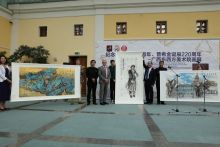 «Ветер с Востока», выставка Академии восточного и западного искусства Гуанси, посвященная 70-летию установления дипломатических отношений между Россией и Китаем и 220-летию А.С. Пушкина, торжественно открылась в ГМП на Пречистенке. Почетными гостями церемонии стали представители посольства КНР, Русско-китайского общества, художники Гуанси.