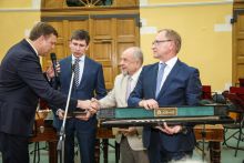 Специально к торжественной дате Генеральный директор Консорциума «Русэкспорт» Д.В. Исаенко передал в дар на вечное хранение Государственному музею А.С. Пушкина изысканный бильярдный кий из морённого дуба возрастом 2000 лет, инкрустированный зелёным нефритом. Кий создан лучшими ремесленниками мира! Оригинал подписи А.С. Пушкина воссоздан розовым золотом в память о нем и о его любви к Москве.