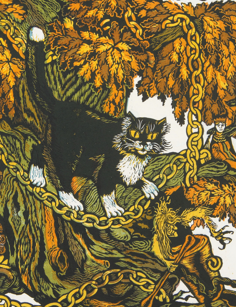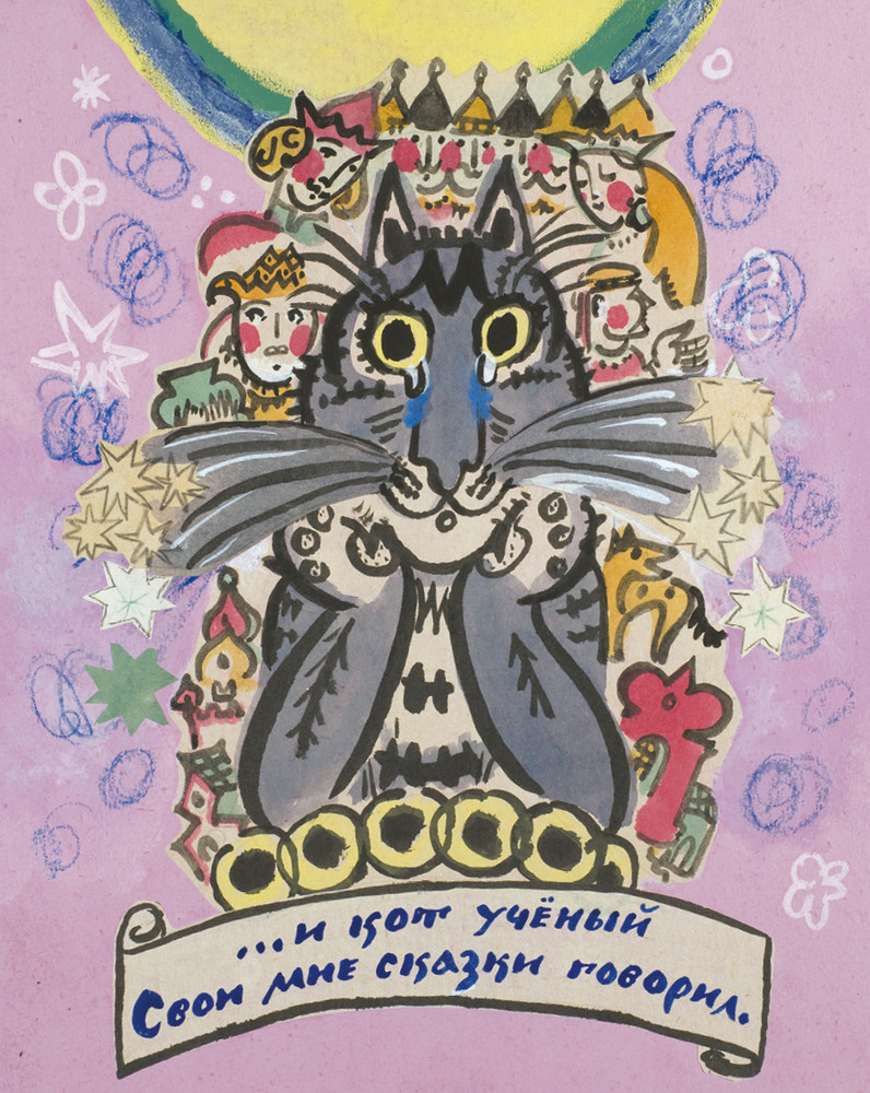 А как ты представляешь себе ученого кота, который умеет рассказывать сказки и петь песни?
