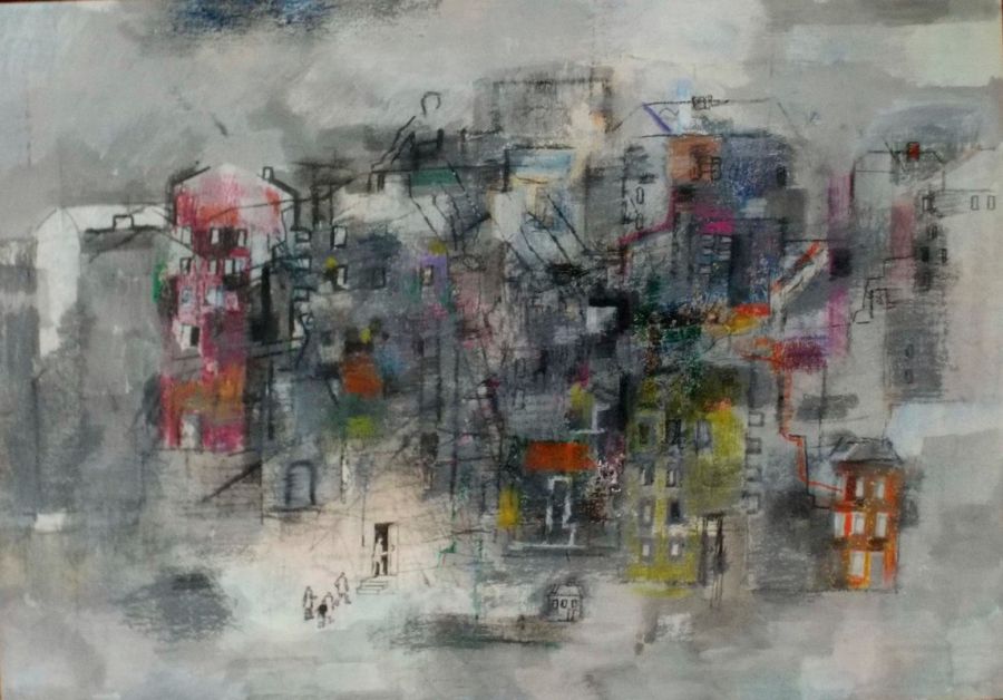 Излюбленные художником конструкции, возникающие от работы к работе, — не то структуры сознания, не то формы моста. Метафорой движения становится порожденная воспоминаниями о детстве серия «Железная дорога», в которой пространство то скручивается, то углубляется,
